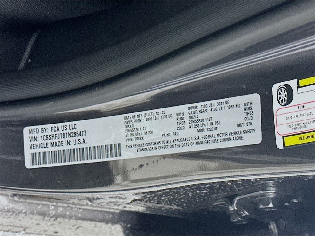 VIN Number 1C6SRFJT8TN286477