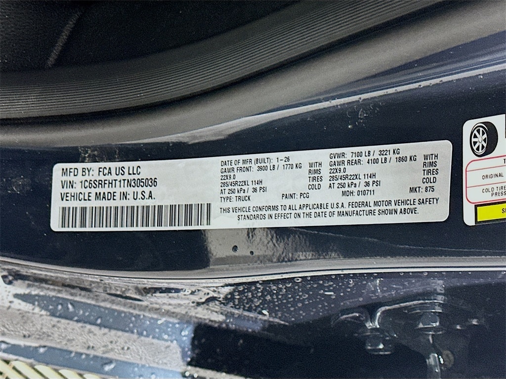 VIN Number 1C6SRFHT1TN305036